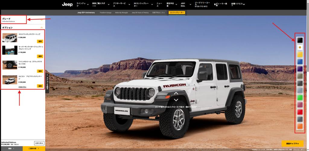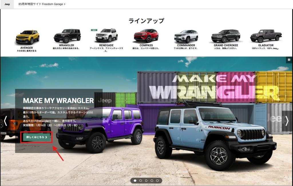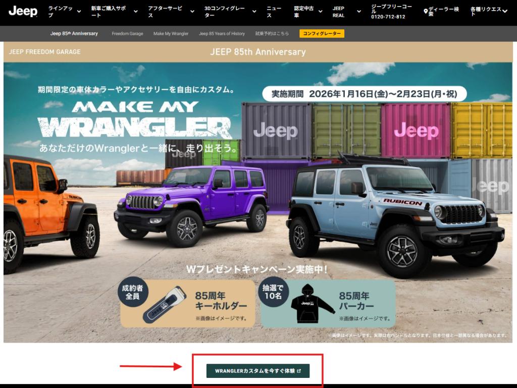 ”WRANGLERカスタムを今すぐ体験”をタップ