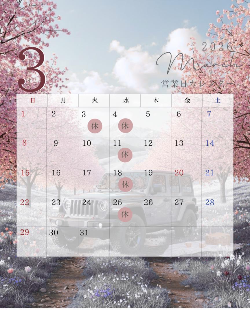 本日は3月の定休日をお知らせいたします!!